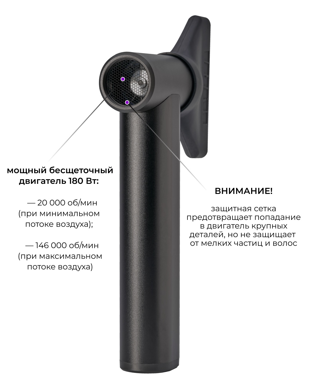 -уникальное силиконовое сопло с правильной длиной и оптимальной шириной. Имеет внутренние разделители для распределения потока воздуха по всему периметру сопла.