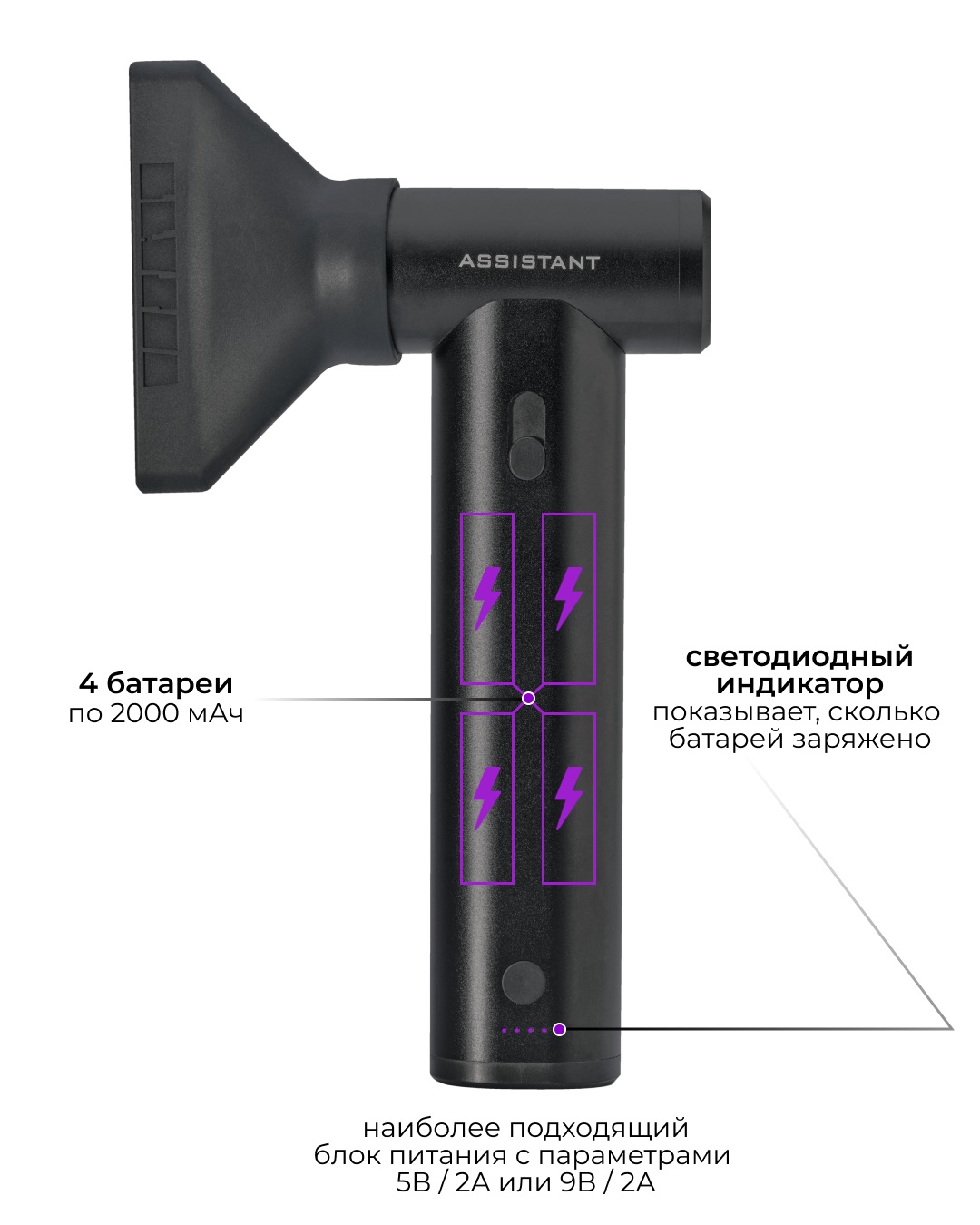 - 4 встроенные батареи по 2000 мАч